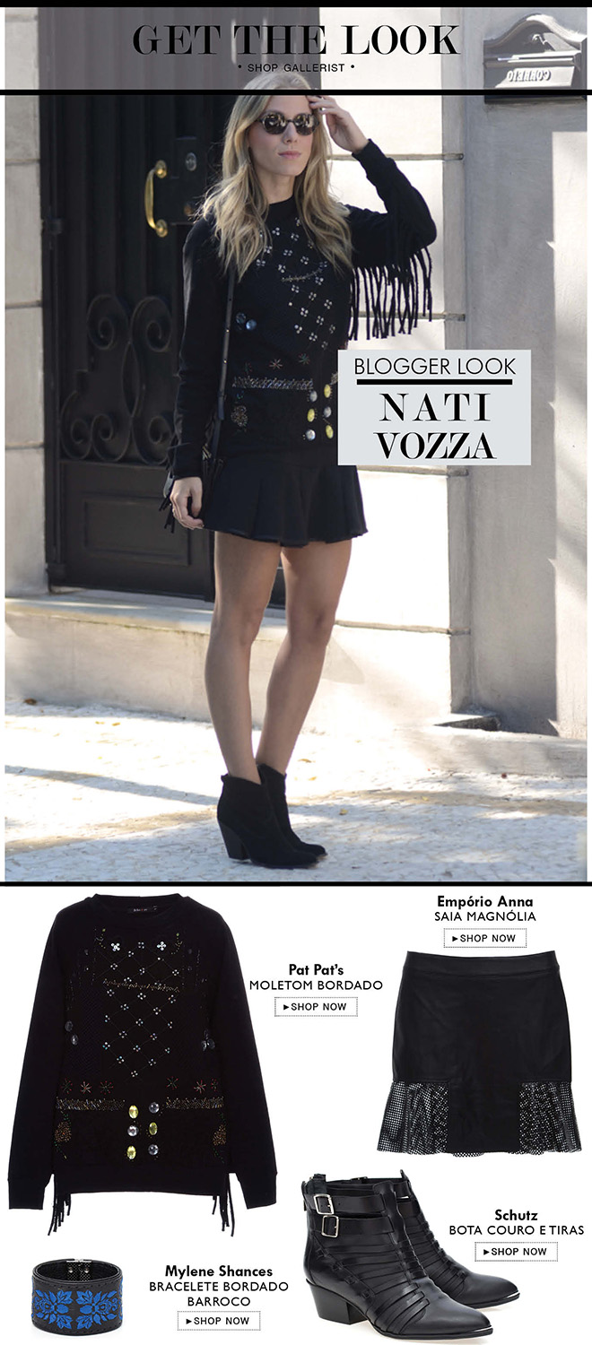 Nos inspiramos num dos últimos looks da Nati para o Get the Look de hoje! O moletom conquistou os armários das fashionistas e tornou-se essencial nas composições de looks para o dia-a-dia. É praticamente impossível deixar a impressão de “over-dressed” quando misturado com outros itens mais poderosos. Pode abusar de sapatos altos, botinhas, saia lápis ou mini, o resultado é sempre inesperado e cool.