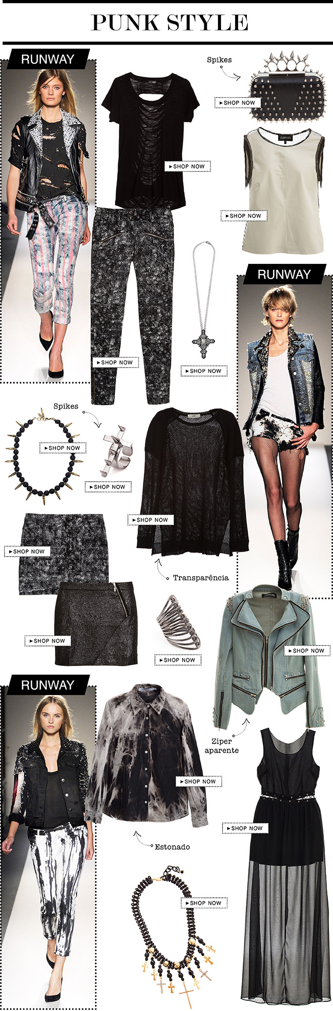 O vai e vem da moda coloca novamente o estilo punk em destaque! E dessa vez a tendência chega com mais elegância. Peças de couro, preto, spikes, botas, são várias as opções para deixar sua composição com jeitinho rebelde.