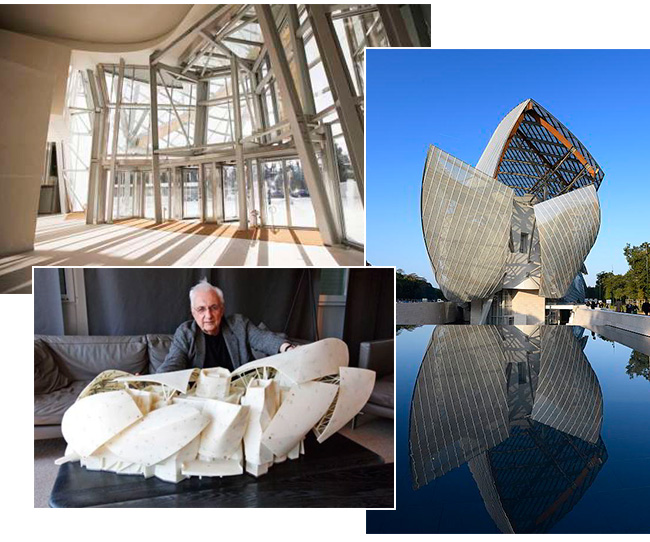 Há duas semanas foi inaugurada a Fundação Louis Vuitton, no Bois de Boulogne em Paris. Projetada pelo arquiteto desconstrutivista Frank Gehry,a fundação atrai tanto pela sua arquitetura como pelas obras que acolhe. O prédio em si já é uma obra de arte que levou 12 anos para ser construído com por enormes placas de vidro sobrepostas, invólucros metálicos e uma estrutura futurística. O projeto até parece uma espécie de grande barco com doze velas ou asas, transpostas e cruzadas, todas em vidro e metal. “O prédio não parece terminado, isso estimula as pessoas a interagir com ele”, declarou Gehry, 85 anos. “Eu olho para ele e já vejo coisas que quero mudar”, acrescentou. Com 11.700m² de área útil e 4.500m² de área construída, onze galerias, sendo que quatro são de grandes espaços e uma é a céu aberto o projeto realmente impressiona!!!