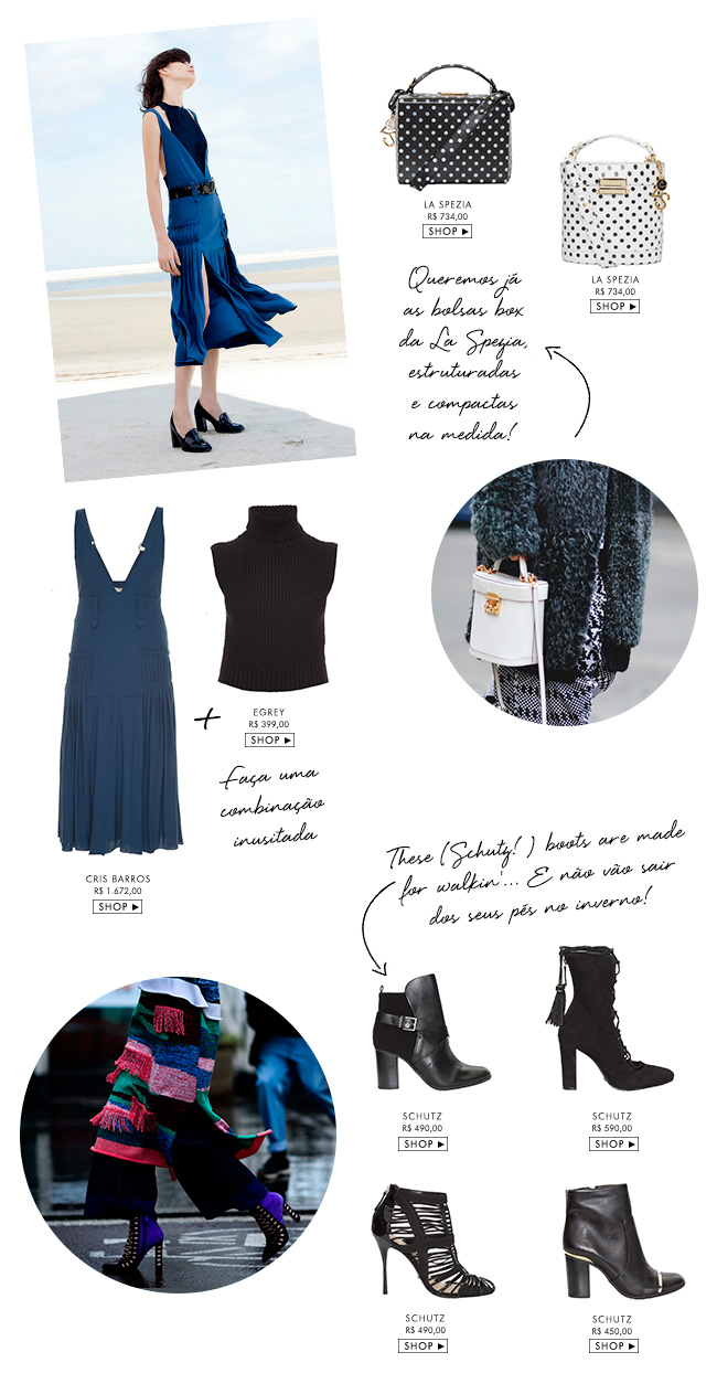Bolsas que são conversation starters e a nova definição de sobreposições para o inverno são algumas ideias que fazem parte da lista de novidades do nosso shop e já estão no nosso radar. Que tal se inspirar com a nossa wishlist e não esperar muito para acessar a nossa galeria e garantir os seus favoritos? Click & Shop!