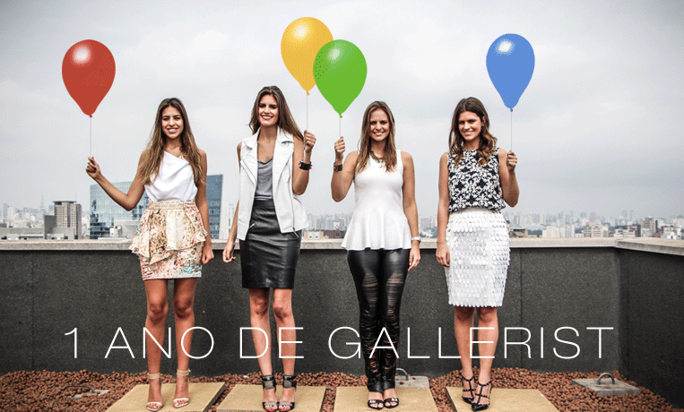 Vocês já devem ter visto por aí que o Gallerist completou 1 ano de vida nesse final de semana! É com muito carinho que agradecemos nossos seguidores, clientes e parceiros pelo 1 ano cheio de conquistas e alegrias! E como forma de festejar esse aniversário, presenteamos vocês com 10% de desconto + frete grátis em todo o site. Ótima época para fazer compras de Natal e arrematar aquelas peças que faltam na sua mala de final de ano! Para facilitar suas compras, cada uma das irmãs escolheu suas top 3 peças. E que tal o nosso Gif animado para comemorar o aniversário?