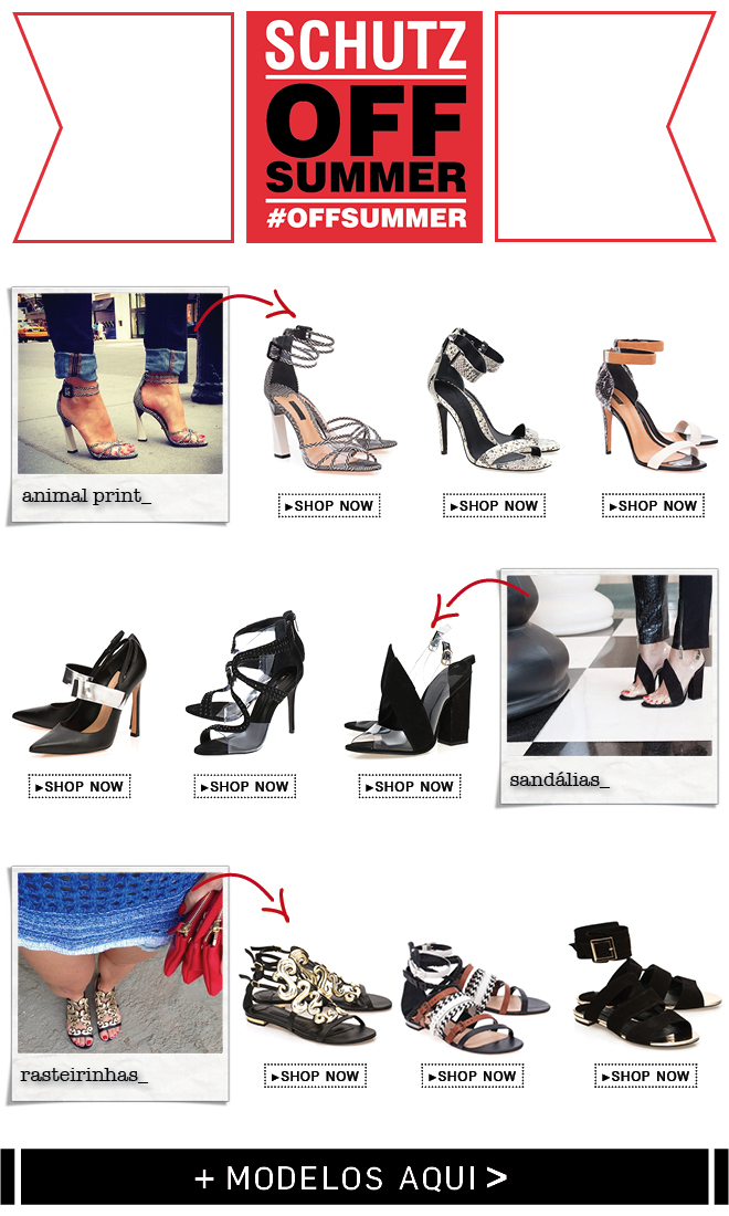 Surpresa boa! A Schutz trouxe o “OFF SUMMER” com antecedência e alguns modelitos ganharam até 50% de desconto. A promo tem data de validade e vai até amanhã! Confira e não perca a oportunidade de arrematar os sapatos do Verão!