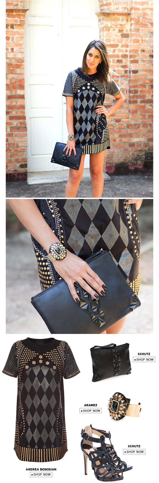 Nada como um little black dress, a.k.a LBD, para acompanhar o ritmo festeiro do final de ano. Este da Andrea Bogosian foi o escolhido da Camilla Marinho, que usou e abusou de acessórios de peso como a sandália gladiadora Schutz, clutch com aplicações em acrílico e o bracelete desejo da Aramez. Se você ainda não atualizou a sua versão do pretinho básico, corra! As festas começam no final deste mês e só param ano que vem.