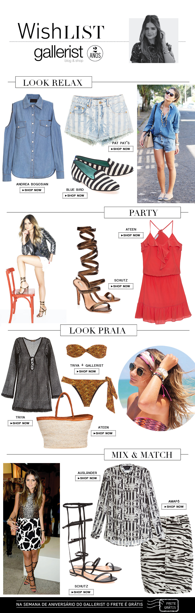 Final de 2013 e começo de 2014 significam milhares de festas e eventos. Pensando nesta época que se estende ate o Carnaval, a Nati criou uma whislist focada em looks perfeitos para cada ocasião. Venha ver!
