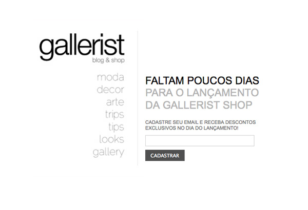 Faltam poucos dias para o lançamento do Gallerist SHOP!