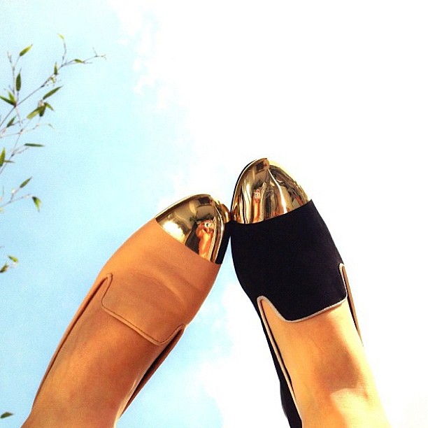 Os slippers são modernos e deixam qualquer look descolex. Nós amamos o e já viramos super adeptas. Esse modelo com ponteira dourada é nosso favorito. Mas o dilema é: Nude ou Preto?