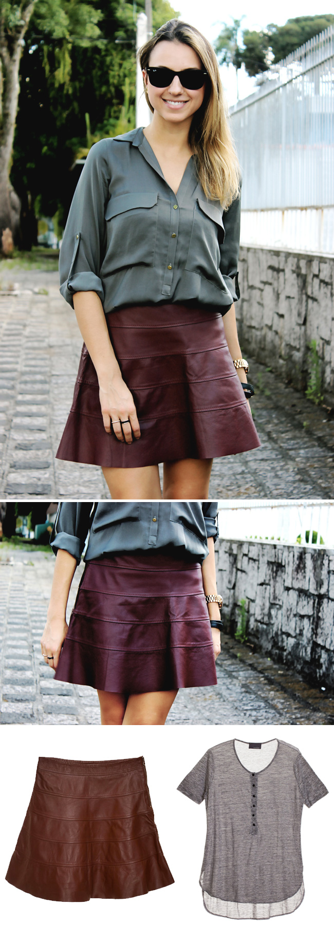 Essa saia não é um máximo? Achei que ela acertou em cheio na mistura da saia com a camisa estampada dando uma descontraída no look. Eu adorei! Vocês gostaram? Para ter esse look no seu armário reunimos as peças aqui pra vocês: