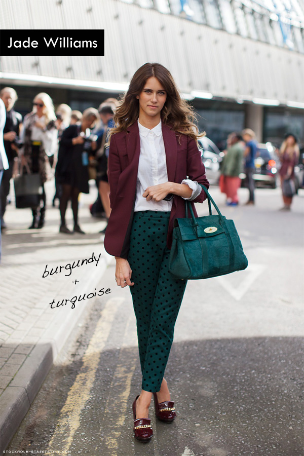Jade Williams tem conquistado o mundo Fashion com seu estilo ingles e dom para mixar diferentes peças num look só. A cantora pop inglesa de 23 anos, que se apresenta como Sunday Girl, já é presença marcada nas semanas de moda e até tem contrato exclusivo com a Mulberry. Nesse look, Jade fez um mix de Burgundy + Turquoise, tendências fortes de cores para o nosso Inverno, podem apostar!