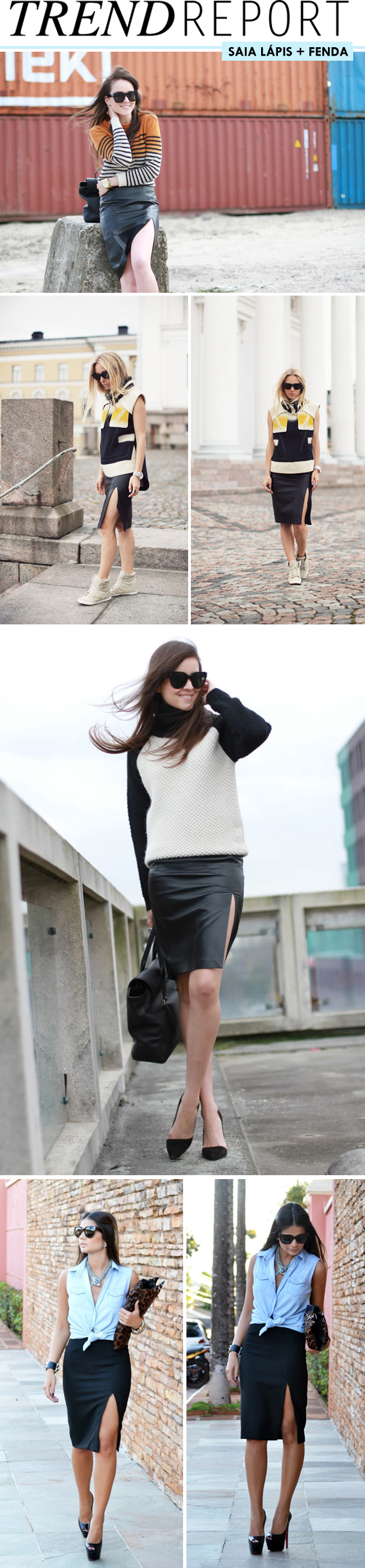 A saia-lápis é um clássico no guarda-roupa e forte tendência para esse verão. A diferença é que agora elas estão aparecendo com fendas! Para quebrar o clima formal da coisa, a fenda dá um toque mais sensual e despojado para a peça – fugindo completamente do look escritório! Inspirem-se com o Trend Report de hoje!