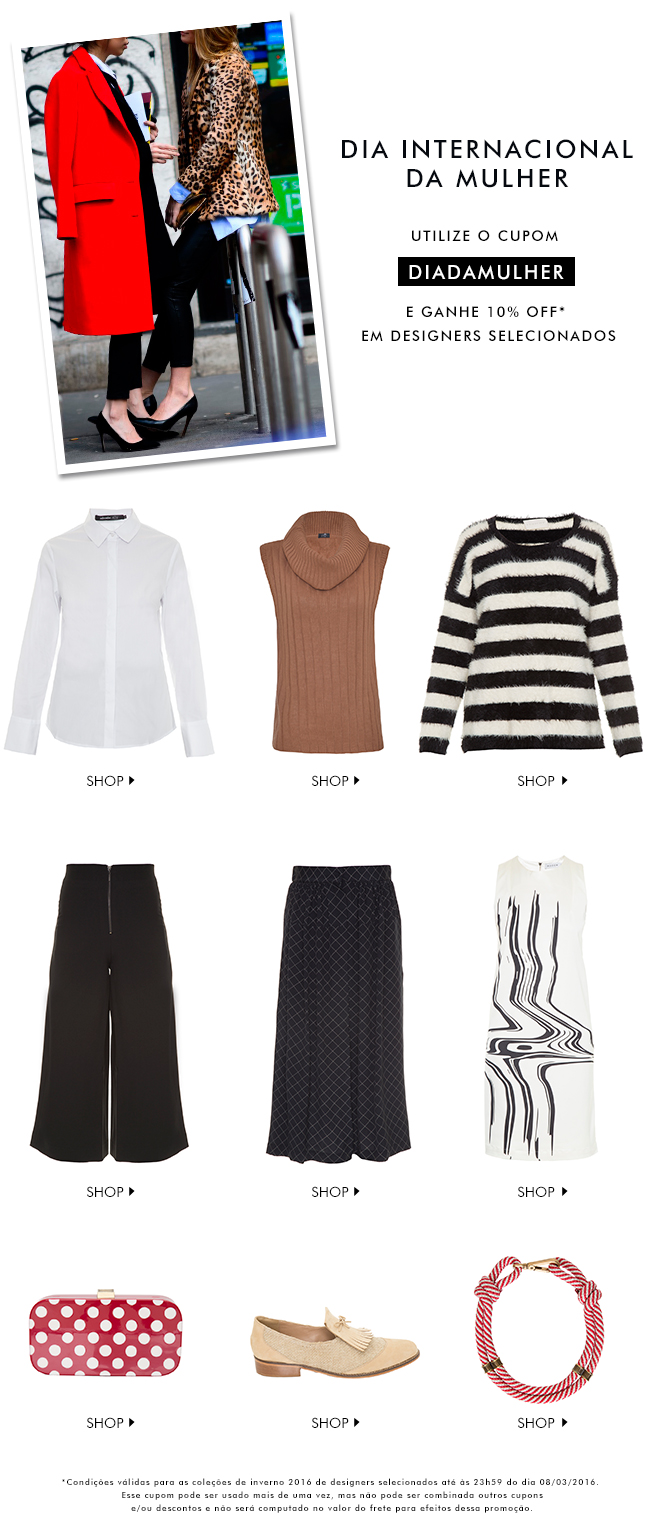 Entre must-haves para o inverno há modelos para todos os estilos, como você confere na seleção que reunimos abaixo com peças que acabaram de chegar ao nosso shop e também em nossa vitrine especial. Escolha as suas favoritas e não esqueça de utilizar o código SAIAS10 antes de finalizar as suas compras. Click & Shop!